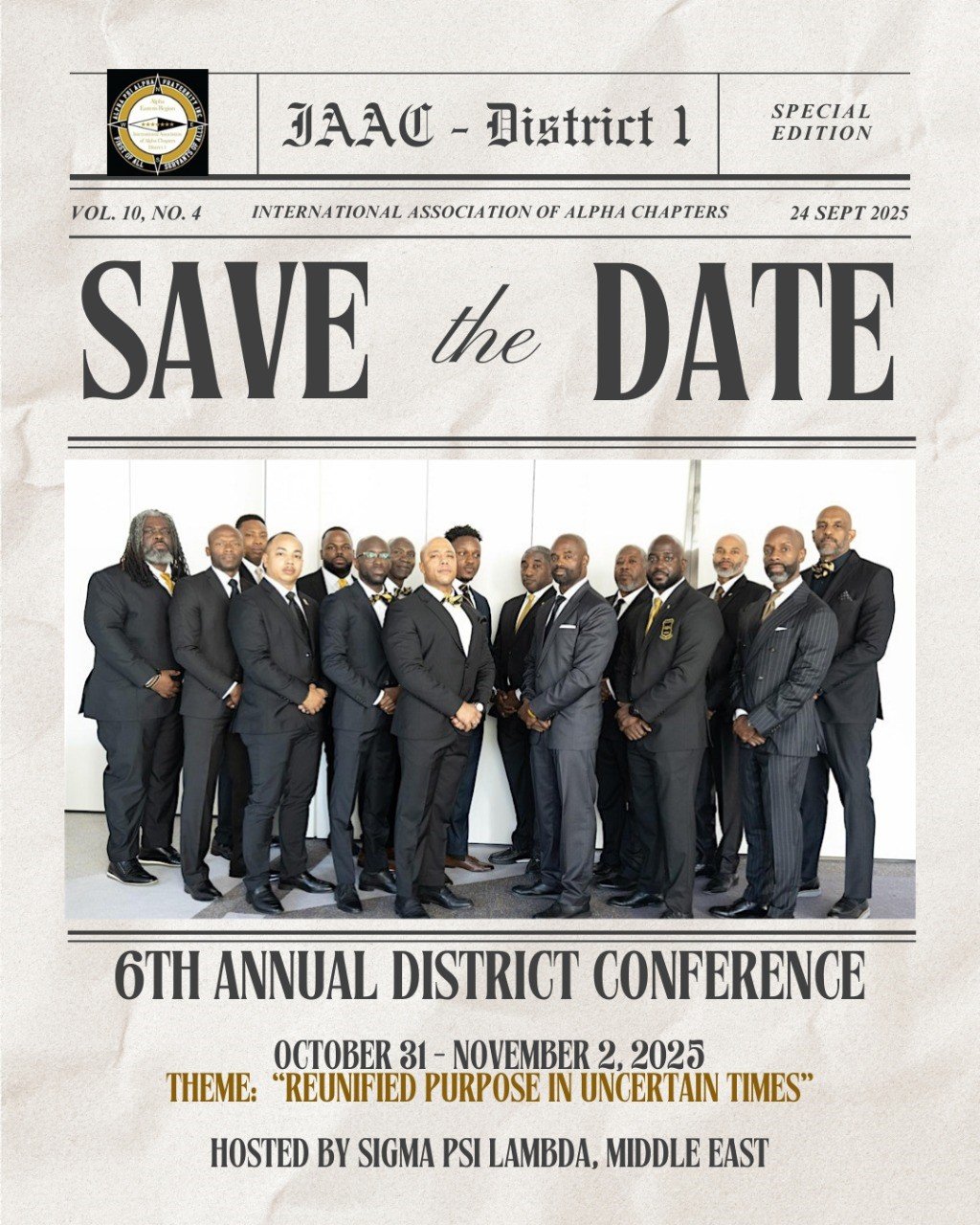 The Sigma Psi Lambda Chapter of Alpha Phi Alpha Fraternity, Inc. will hold our January chapter meeting on Saturday, January 12, 2024, commencing at 12:00 pm. Please contact the chapter for details. The meeting is for Brothers only and the attire is Alpha Attire.